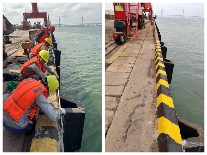 在日常安全巡查中,發(fā)現(xiàn)港口經(jīng)營公司萬噸級(jí)碼頭前沿?cái)r水坎,出現(xiàn)局部混凝土損壞、鋼筋裸露的情況,若不及時(shí)修復(fù),將對海洋安全產(chǎn)生環(huán)境污染。按常規(guī)流程,該項(xiàng)修復(fù)工作費(fèi)用高、工期長且需外委專業(yè)施工隊(duì),但公司黨支部在“書記項(xiàng)目”推進(jìn)會(huì)上明確要求:“在確保安全與質(zhì)量的前提下,能自主完成的絕不外委!”港口經(jīng)營公司黨支部書記劉芳芳主動(dòng)領(lǐng)題,牽頭組織黨員干部,集結(jié)涵蓋結(jié)構(gòu)工程、機(jī)械維修、安全管理等專業(yè)的黨員技術(shù)骨干,把“硬骨頭”變成“練兵場”。 “攔水坎修復(fù)要兼顧船舶靠泊時(shí)產(chǎn)生的擠壓碰撞力,混凝土配比、鋼筋加固都得精準(zhǔn)。”黨支部組織委員、副總經(jīng)理黎陽生是港口經(jīng)營公司技術(shù)“總工程師”,他帶著黨員維修組白天測量損壞面積、記錄鋼筋變形數(shù)據(jù),晚上研究修復(fù)技術(shù)規(guī)范,反復(fù)驗(yàn)算修復(fù)方案。為節(jié)省成本,他們翻遍倉庫“淘”出閑置的高強(qiáng)度螺紋鋼,自主切割焊接;利用碼頭現(xiàn)有的混凝土攪拌設(shè)備,按實(shí)驗(yàn)配比調(diào)配修補(bǔ)材料,經(jīng)過多次試驗(yàn),最終確定“基層清理+鋼筋網(wǎng)加固+分層澆筑+防水警示涂層”的修復(fù)工藝。
