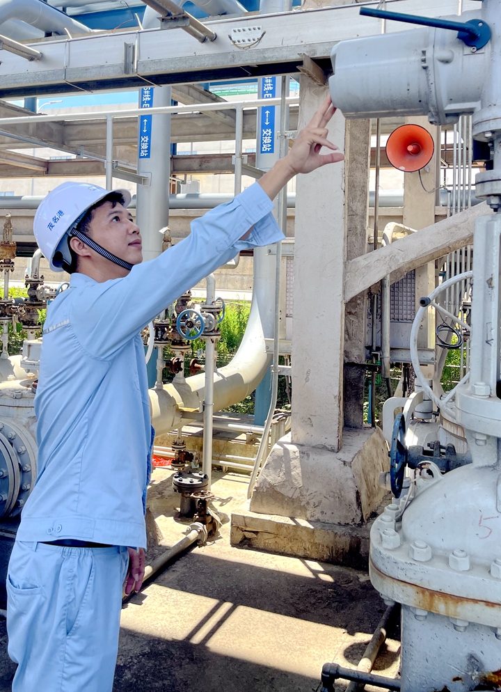 2024年是碼頭和庫區(qū)的重要?dú)v史節(jié)點(diǎn),何雄勝同志以“全天候”“無休息”的戰(zhàn)斗姿態(tài)沖鋒在前。油氣回收系統(tǒng)投用前,他連續(xù)堅(jiān)守崗位,精準(zhǔn)指導(dǎo)水沖洗、吹掃、氣密等關(guān)鍵工序,細(xì)致核查涉及液氮深冷工序等危險(xiǎn)工藝的300余個(gè)法蘭點(diǎn)!把b置運(yùn)行不容疏忽,必須把安全放在首位!”這是他堅(jiān)守的信念。正是這份黨員的極致嚴(yán)謹(jǐn),確保了裝置一次性成功聯(lián)調(diào),運(yùn)行指標(biāo)符合設(shè)計(jì)規(guī)范。他還指導(dǎo)用分析儀等設(shè)備精確測試不同工況能耗,為節(jié)能降耗打下了堅(jiān)實(shí)基礎(chǔ)。面對首次卸船、裝船、茂石化長輸管線進(jìn)罐等多項(xiàng)艱巨任務(wù)的圓滿完成,油污滿面也難掩他臉上的欣慰:“這就是黨員應(yīng)有的‘進(jìn)度條’!”