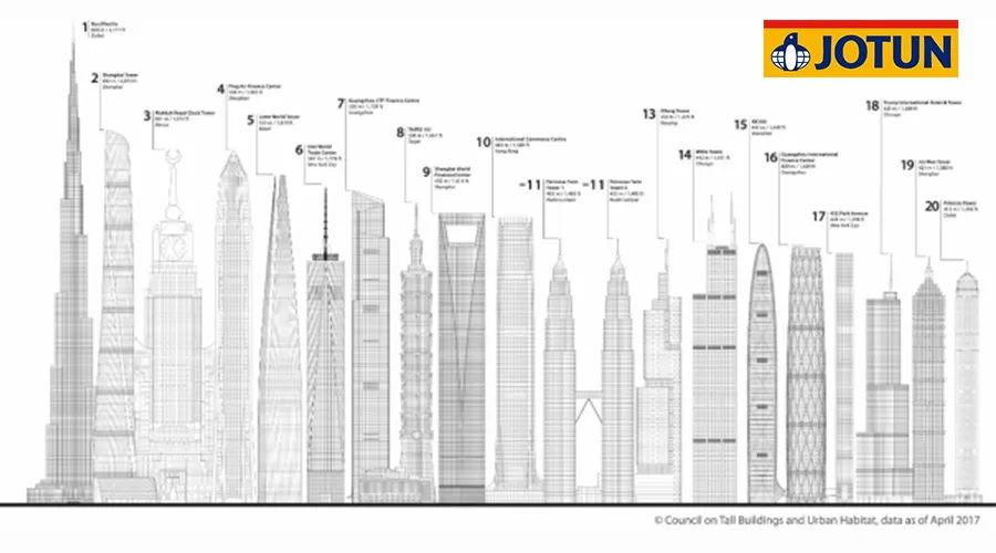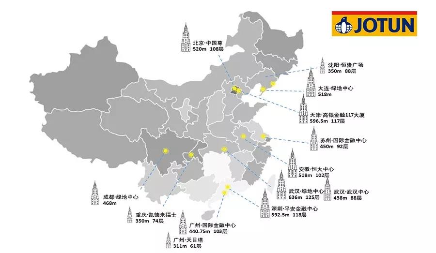 從北京的最新城市天際線“中國尊”到廣州保利琶洲“天目塔”,從天津高銀金融117大廈到成都綠地中心,從上海中心大廈到深圳平安金融中心,一座座不斷刷新記錄的超高層建筑,以高超的建筑技術和設計藝術彰顯著城市的活力與野心,而這一座座靚麗的城市風景線背后都有著佐敦涂料的身影——佐敦以強大的技術實力以及深厚的行業(yè)經驗,整合工業(yè)保護涂料、裝飾漆和粉末涂料三大業(yè)務單元的優(yōu)勢,為超高層建筑提供一站式全方位的保護。