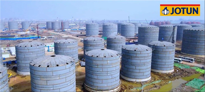 佐敦的Tankguard系列儲罐內(nèi)襯漆和Jotatemp系列耐高溫漆助力了盛虹石化300萬立方原油/成品油罐區(qū)、全廠管道及設(shè)備涂刷。