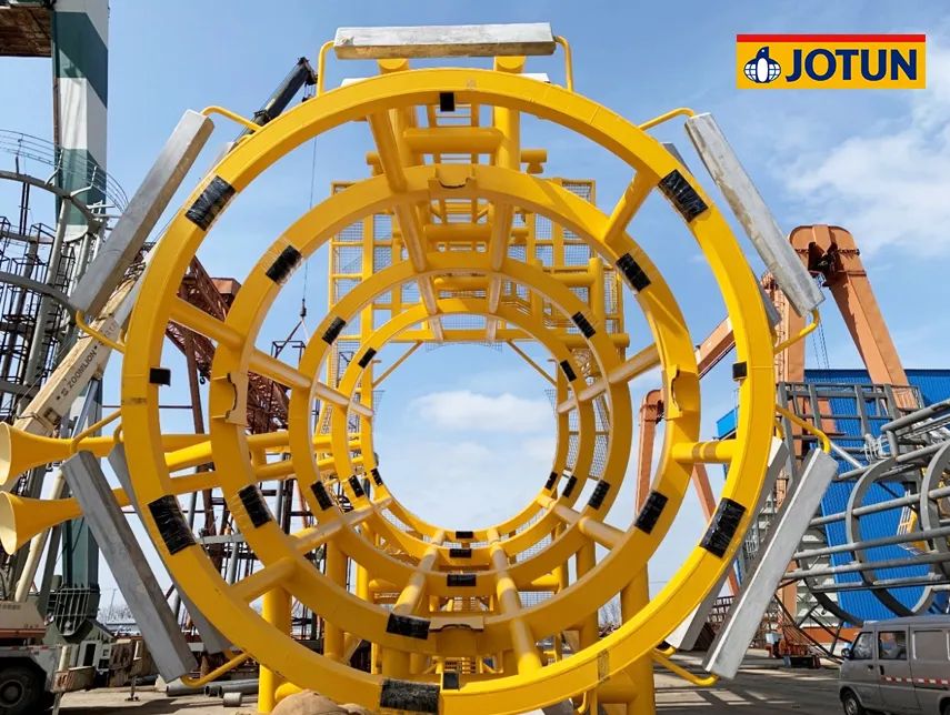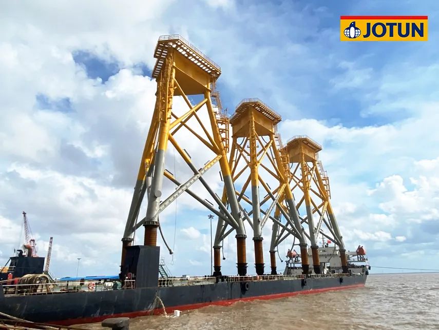 項目總投資102.86億元,規(guī)劃容量500兆瓦,水深范圍41-46米,離岸距離55公里。67臺海上風機矗立在水深40多米的海里,風機基礎結(jié)構(gòu)采用導管架形式,佐敦為整個項目的導管架涂裝提供了超過700,000升防腐涂料。
