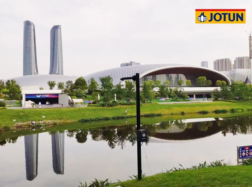 打破人們對(duì)于現(xiàn)代建筑冷冰冰的傳統(tǒng)理念,用獨(dú)特的月牙懸挑結(jié)構(gòu)創(chuàng)造張力之美,以萬(wàn)鈞鋼之重造就灞河之濱輕盈的月光之美。佐敦以豐富的鋼結(jié)構(gòu)防腐涂刷業(yè)績(jī)和專(zhuān)業(yè)的防腐防火長(zhǎng)效保護(hù)提案,被選定為9萬(wàn)噸鋼結(jié)構(gòu)的防腐防火涂料供應(yīng)商,特選用佐敦膨脹型防火涂料與氟碳面漆組合,為2萬(wàn)多噸的外露屋蓋鋼桁架保駕護(hù)航,實(shí)現(xiàn)“懸浮彎月”的建筑設(shè)計(jì)效果。